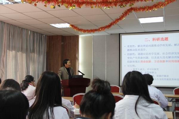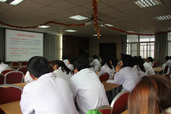韩教授用简练的语言概述了科学研究的定义和分类,重点讲解了科学研究开展的整个过程:包括如何发现问题、怎样选题、课题的设计、立项报告的填写以及研究内容、方法、目标等。针对医务人员工作的特殊性他建议大家定期了解医学最新动态,更新知识,掌握理论前沿;参加一些学术交流,了解更多新的学术思想和研究方法另外科研要以个人兴趣及学科专长为基础,努力拓展自己的创造性思维。