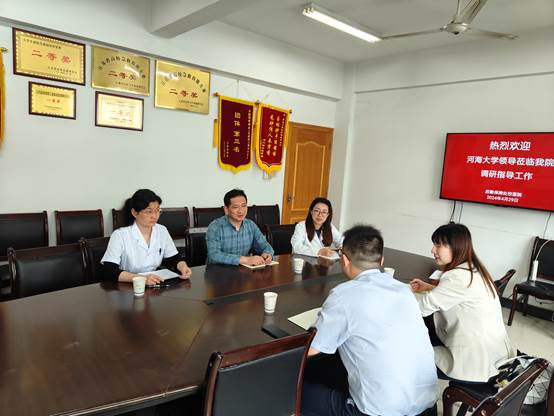 4月29日上午,河海大学人事处医保办祁世峰主任、徐欣欣老师等一行来我院调研交流工作。后勤保障处副处长、红宝石最新登录地址院长王全权、红宝石最新登录地址副院长贺亚玲、红宝石最新登录地址医保办严晓莺老师参加了本次调研交流。